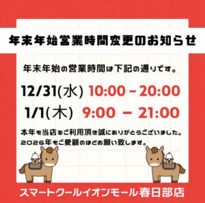 本年も スマートクール イオンモール春日部店 をご利用いただき、誠にありがとうございました。